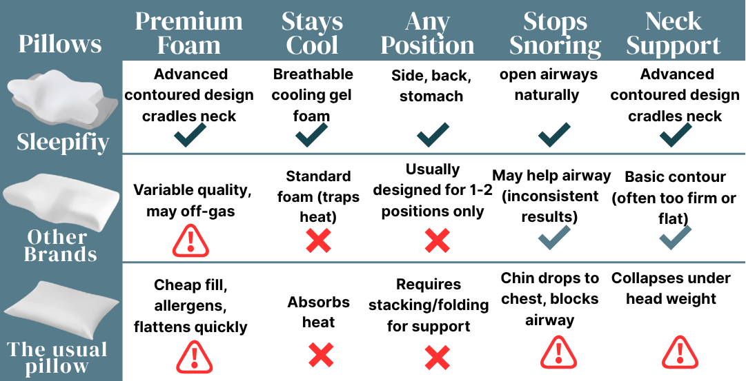 The Sleepifiy Pillow opens your airways, reduces snoring, and keeps your breathing natural all night — so you wake up energized and pain-free.